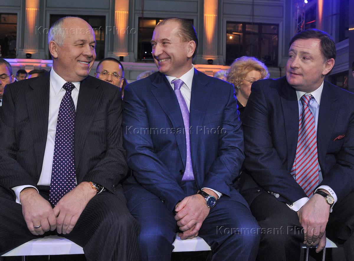 Генеральный директор корпорации "Ростехнологии" Сергей Чемезов (в центре) и президент компании "Боинг-Россия/СНГ" Сергей Кравченко (справа) на торжественном мероприятии, посвященном 5-летнему юбилею Госкорпорации "Ростехнологий".