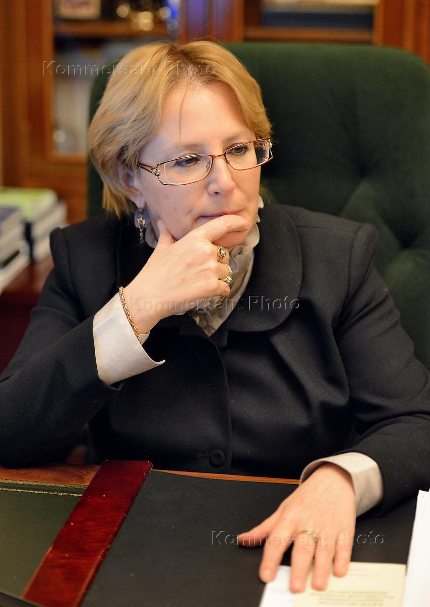 Министр здравоохранения России Вероника Скворцова во время интервью.