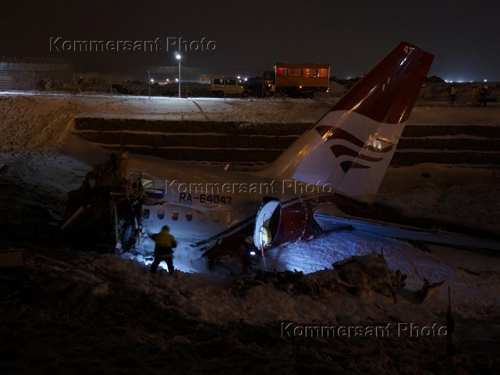 Место крушения самолета Ту-204 авиакомпании Red Wings в аэропорту "Внуково". Самолет после жесткой посадки выехал за пределы взлетно-посадочной полосы на проезжую часть Киевского шоссе.
