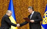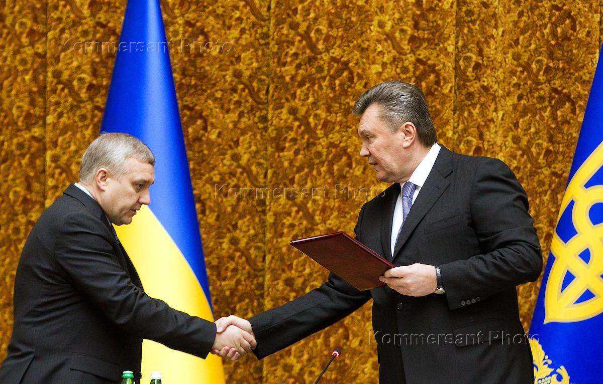 Президент Украины Виктор Янукович (справа) и новый председатель Службы безопасности Украины (СБУ) Александр Якименко (слева) во время представления руководящему составу Службы безопасности Украины.