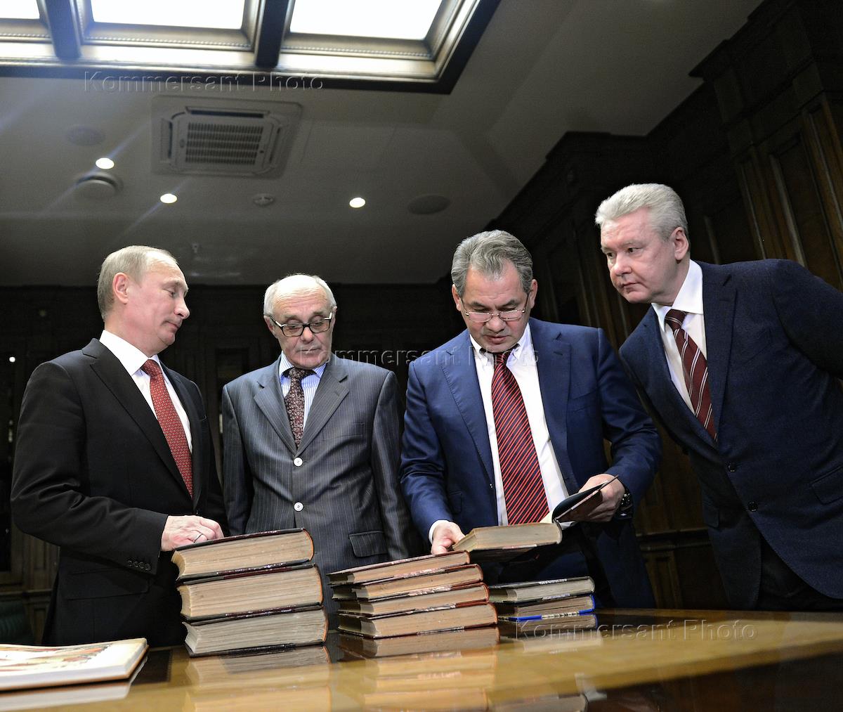 Слева направо: руководитель администрации президента России Сергей Иванов, президент России Владимир Путин, возглавляющий попечительский совет Русского географического общества, мэр Москвы Сергей Собянин, министр обороны Сергей Шойгу на открытии штаб-квартиры Русского географического общества (РГО).