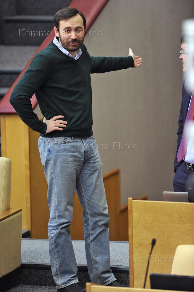 Member of the Russian State Duma (SD) for Economic Policy, Entrepreneurship and Innovation Development Ilya Ponomarev at the plenary session of the Russian State Duma.