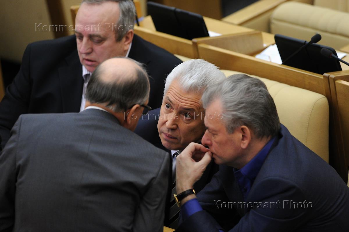 Member of the Russian State Duma Committee for Security and Anti-Corruption, Vladimir Vasiliev (center) at the plenary session of the Russian State Duma.