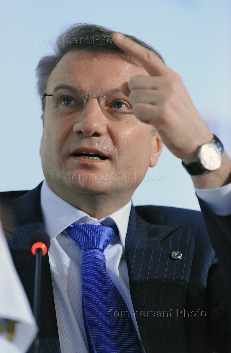 Гайдаровский форум 2013. Президент Сбербанка России Герман Греф во время заседания "Россия и мир: вызовы интеграции". Заседание прошло в Российской академии народного хозяйства и государственной службы при президенте России.
