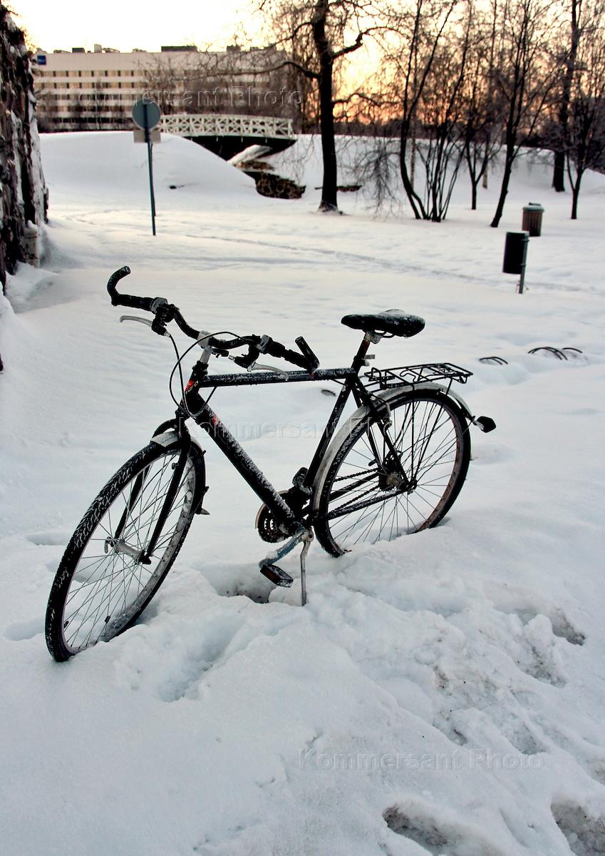 Views of Oulu. Frament monument "Passage of time" (author S. Koyvisto), which was established in 2005 near the town hall of Oulu.