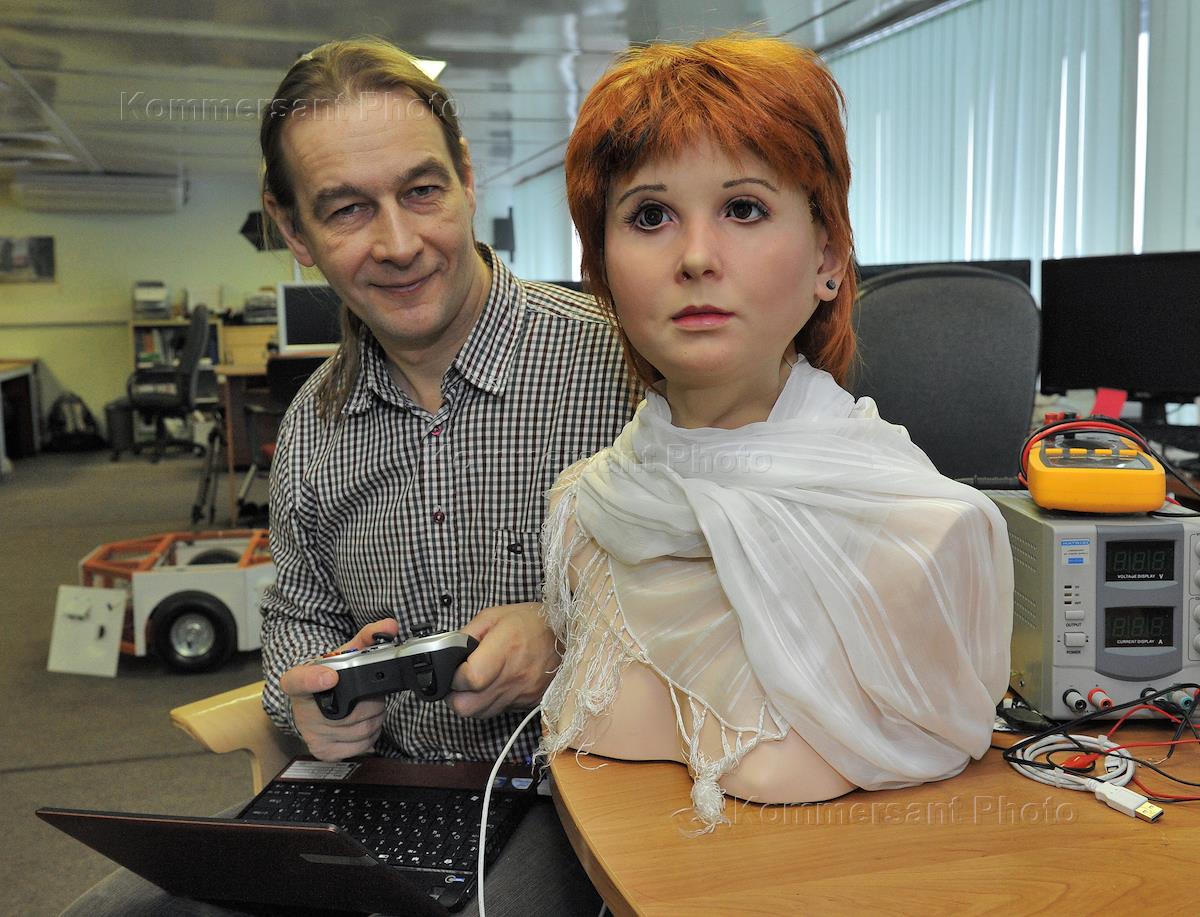 Директор компании Владимир Конышев компании "Нейроботикс" в процессе создания робота Алисы.