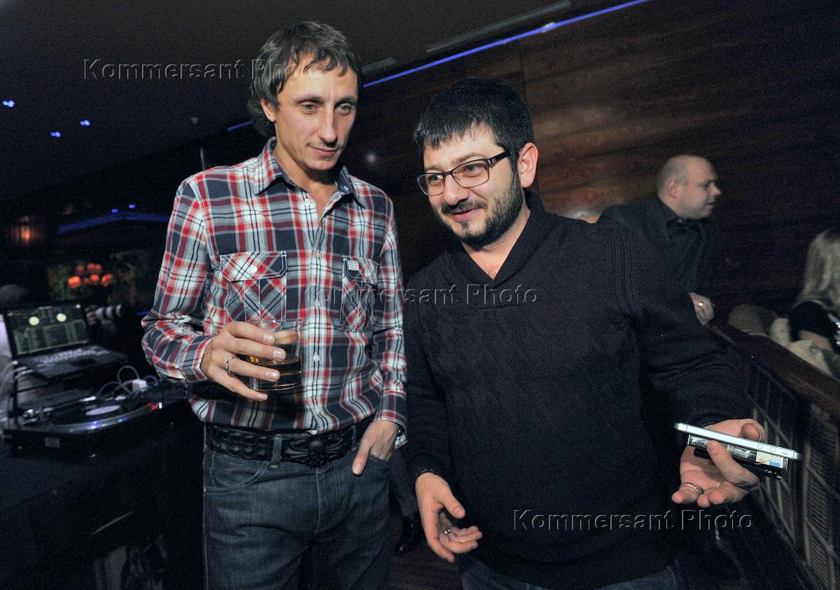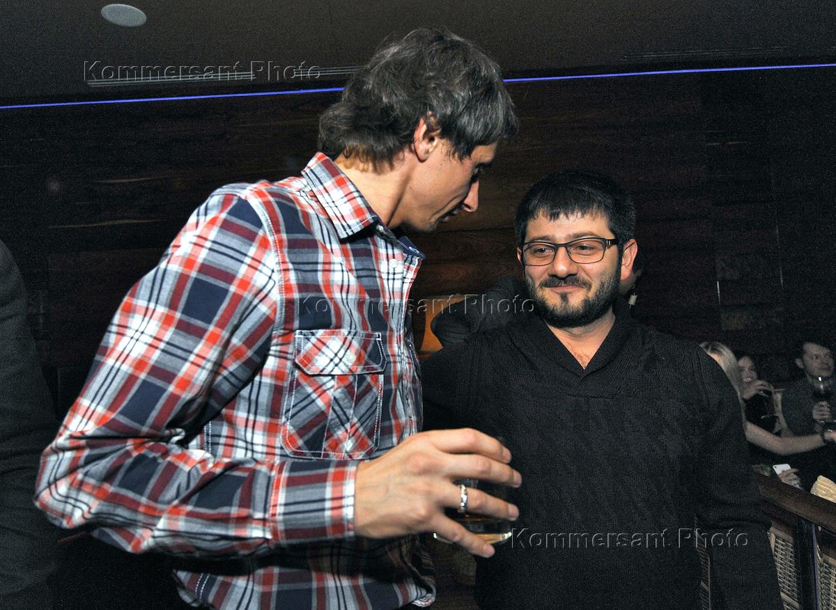 Режиссер, продюсер Тимур Хван (слева) и шоумен Михаил Галустян (справа) на открытии ресторана азиатской кухни "Лодка" в ТЦ "Лотте Плаза".