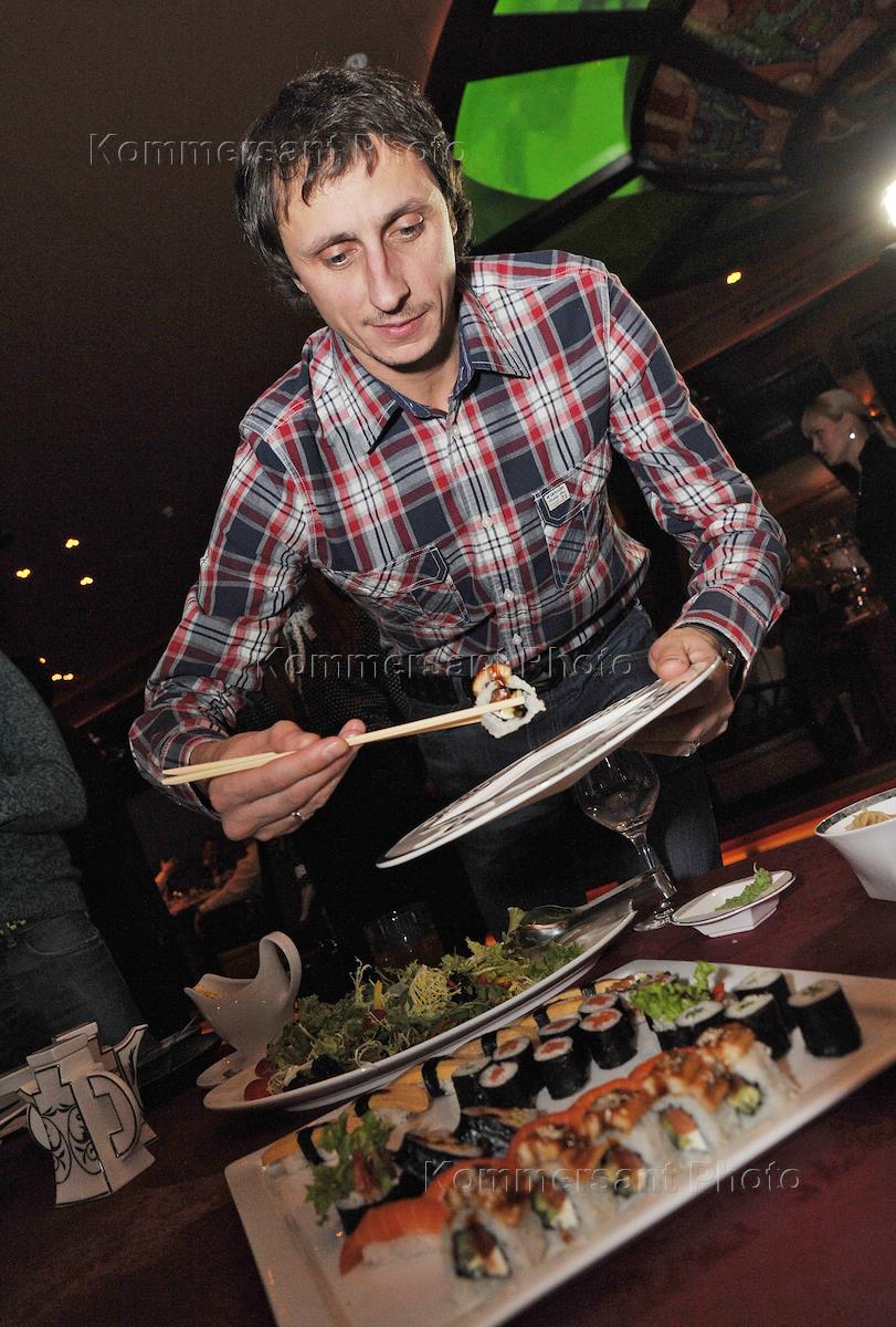 Телеведущий Вадим Галыгин (справа) на открытии ресторана азиатской кухни "Лодка" в ТЦ "Лотте Плаза".