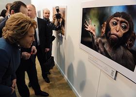 Открытие Международной выставки фотографий дикой природы в рамках Московского международного фестиваля дикой природы "Золотая черепаха" в ЦДХ на Крымском валу, с участием председателя Совета федерации Валентины Матвиенко.