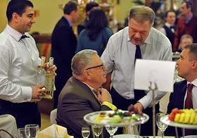 Лидер Либерально-демократической партии России (ЛДПР), член комитета Государственной думы по обороне Владимир Жириновский (в центре) во время "Бала прессы-2013" в гостинице "Метрополь".