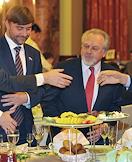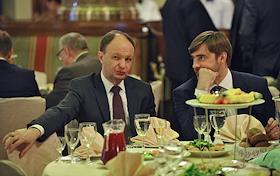 Руководитель Федерального агентства по печати и массовым коммуникациям (ФАПМК) России Михаил Сеславинский (слева) и заместитель председателя Государственной думы России Сергей Железняк (справа) на вечере "Бал прессы 2013". Вечер прошел в гостинице "Метрополь".