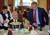 Мэр Москвы Сергей Собянин (в центре) и министр обороны России Сергей Шойгу (справа) на вечере "Бал прессы 2013". Вечер прошел в гостинице "Метрополь".