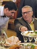 Лидер Либерально-демократической партии России (ЛДПР), член комитета Государственной думы по обороне Владимир Жириновский (справа) во время "Бала прессы-2013" в гостинице "Метрополь".