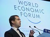 Всемирный экономический форум в Давосе. Председатель правительства России Дмитрий Медведев во время пленарной сессии экономического форума "Сценарии развития Российской Федерации".