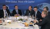 Встреча с иностранными инвесторами прошла в рамках Всемирного экономического форума в Давосе. Слева направо: президент, председатель правления "ВТБ Банк" Андрей Костин, председатель правительства России Дмитрий Медведев, основатель TPG Дэвид Бондерман, заместитель председателя правительства России Аркадий Дворкович и председатель Комитета гражданских инициатив Алексей Кудрин во время встречи.