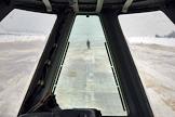 Авиабаза Дягилево. Вид из кабины штурмана самолета-топливозаправщика (воздушного танкера) Ил-78.Самолет в процессе руления приближается к посту визуального осмотра воздушного судна перед взлетом.