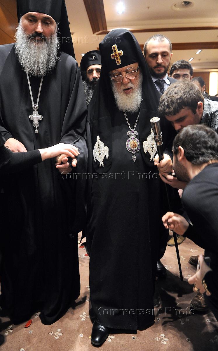 Святейший и Блаженнейший Католикос-Патриарх всея Грузии Илия II (слева) на встрече с грузинской диаспорой Москвы. Встреча прошла в гостиннице "Украина".
