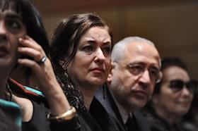 Певица Тамара Гвердцители (вторая слева) и телеведущий Николай Сванидзе (второй справа) во время встречи с Святейшим и Блаженнейшим Католикосом-Патриархом всея Грузии Илией II. Встреча прошла в гостиннице "Украина".