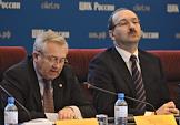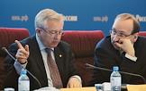 Заместитель председателя Центральной избирательной комиссии (ЦИК) России Леонид Ивлев (слева) и секретарь ЦИК России Николай Конкин (справа) во время совещания ЦИК России с председателями избирательных комиссий субъектов России. Совещение прошло в ЦИК России.
