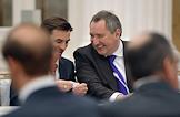 Министр России по связям с Открытым правительством Михаил Абызов (слева) и заместитель председателя правительства России Дмитрий Рогозин (справа) во время расширенного заседания правительства России в Кремле.