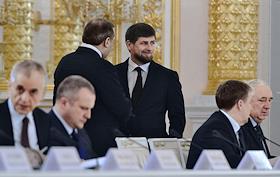 Глава Чеченской Республики Рамзан Кадыров (слева) на заседании по вопросам самоуправления. Заседание прошло в Кремле.