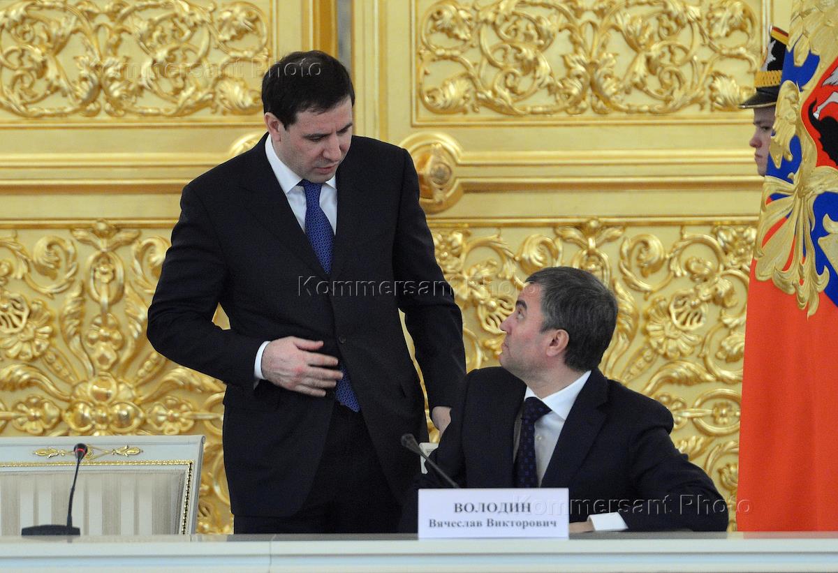 Первый заместитель руководителя администрации президента России Вячеслав Володин (справа) на заседании по вопросам самоуправления в Кремле.