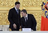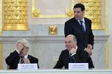 Заседание по вопросам самоуправления. Помощник президента России Игорь Щеголев (слева) и генеральный прокурор России Юрий Чайка (в центре) на заседании в Кремле.