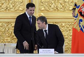 Первый заместитель руководителя администрации президента России Вячеслав Володин (слева) на заседании по вопросам самоуправления в Кремле.