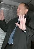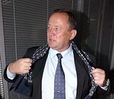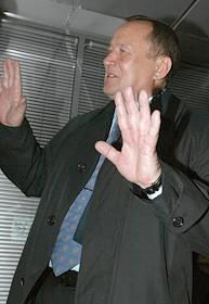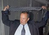 Губернатор Саратовской области Дмитрий Аяцков одевается после пресс-конференции "Проблемы местного самоуправления". Пресс-конференция состоялась в РИА "Новости".