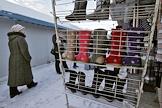 Вещевой рынок города. Продавец закрывает свой торговый павильон.
