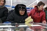 Покупатели в открывшемся супермаркете "Виталюр". Отдел гастрономии.