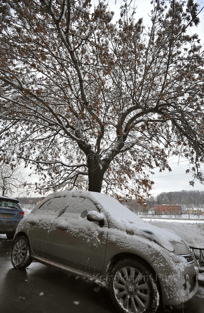 Последствия сильного снегопада в Москве. Автомобиль, засыпанный снегом.