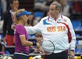 Теннис. Кубок Федерации – 2013. Второй день. Теннисистка Елена Веснина (Россия) и президент Федерации тенниса России Шамиль Тарпищев (справа) в матче 1/4 финала Мировой группы Россия - Япония в СК "Олимпийский".