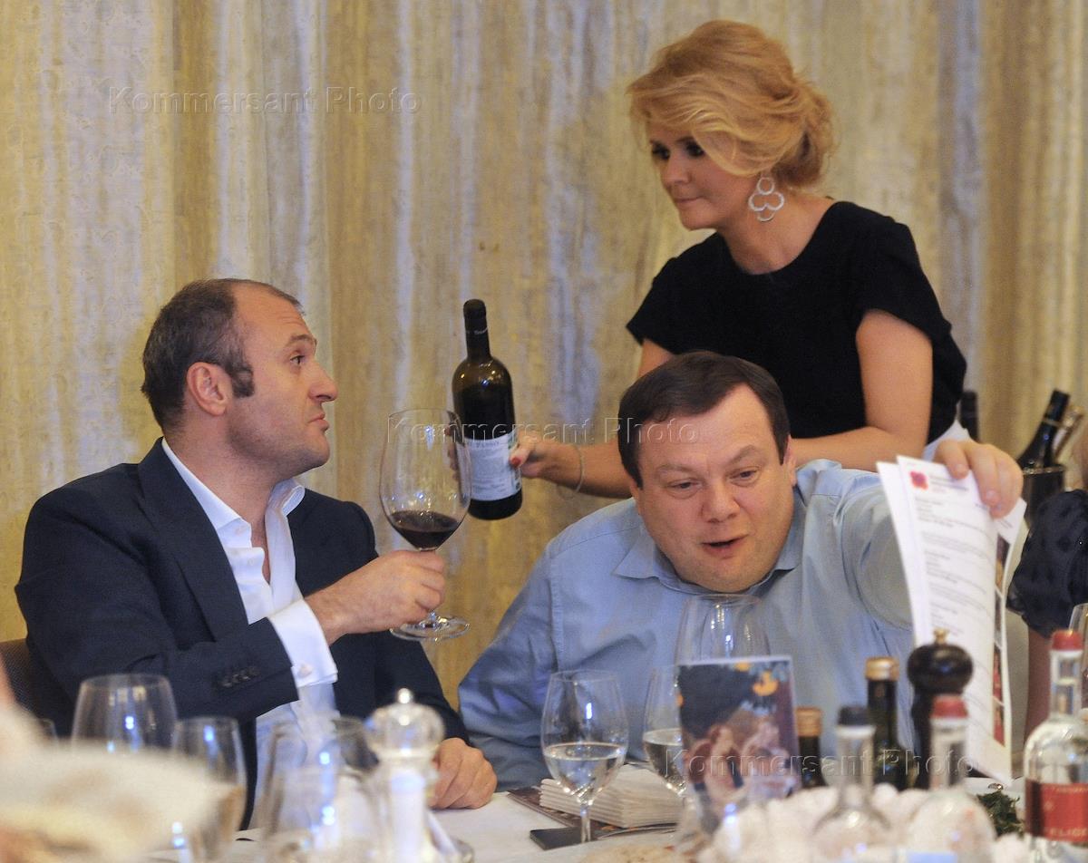 Благотворительный ужин "Хорошее мероприятие" журнала Tatler и клуба PrimeConcept совместно с фондом Ирины Почитаевой "Здоровое наследие". Председатель совета директоров некоммерческого партнерства "Русбренд" Давид Якобашвили (слева) и председатель совета директоров АФК "Система" Владимир Евтушенков (справа) во время ужина в ресторане Piazza Italiana.