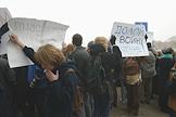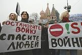 В Москве 23 октября произошел захват террористами зрительного зала Дворца культуры (ДК) завода "Московский подшипник", в котором шла демонстрация мюзикла "Норд-Ост". Ответственность за захват более 700 заложников взял на себя известный чеченский боевик Мовсар Бараев. Родные и близкие заложников во время митинга на Васильевском спуске. Люди держат плакаты с призывами остановить войну в Чечне.