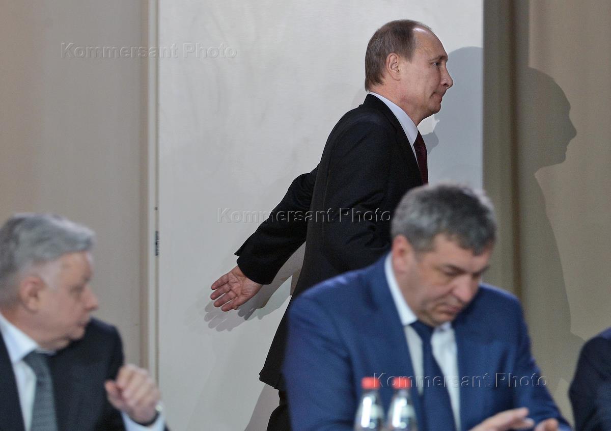 Президент России Владимир Путин (в центре) во время заседания Совета при президенте России по межнациональным отношениям. Заседание прошло в Еврейском музее и Центре толерантности.