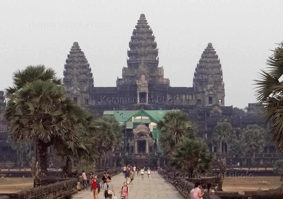 Views of Cambodia. Angkor Wat Temple, dedicated to God Vishnu. Tourists visiting the temple.