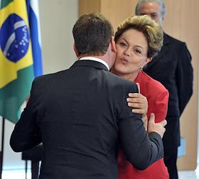 Рабочий визит председателя правительства России Дмитрия Медведева в Бразилию. Председатель правительства России Дмитрий Медведев (слева) и президент Федеративной Республики Бразилия Дилма Роуссефф (справа) во время официальной встречи.