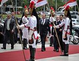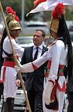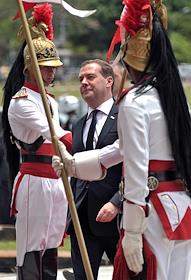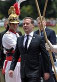 Официальный визит председателя правительства России Дмитрия Медведева в Бразилию. Председатель правительства России Дмитрий Медведев (в центре) во время официальной церемоии встречи.