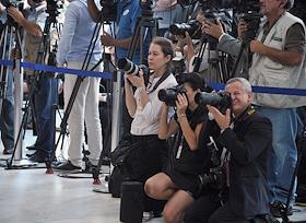 Официальный визит председателя правительства России Дмитрия Медведева в Бразилию. Фотограф Екатерина Штукина (слева) во время VI заседания Российско-бразильской комиссии высокого уровня по сотрудничеству (КВУ).