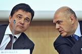 Руководитель Федеральной налоговой службы России Михаил Мишустин (слева) и временно исполняющий обязанности губернатора Московской области Андрей Воробьёв (справа) на заседании коллегии УФНС по Московской области, посвященном подведению итогов деятельности налоговой службы в 2012 году и задачам на 2013 год.