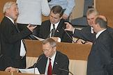 Депутат от фракции "Регионы России" (Союз независимых депутатов) Артур Чилингаров (в центре) во время заседания Государственной Думы России.