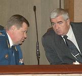 Генеральный прокурор России Владимир Устинов (слева) и полномочный представитель Президента России в Государственной Думе Александр Котенков (справа) на очередном заседании Государственной Думы России. В рамках "Правительственного часа" с информацией о мерах по предотвращению экстремистской деятельности в России перед депутатами выступили министр юстиции Юрий Чайка и генеральный прокурор Владимир Устинов.