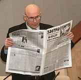 Депутат Государственной Думы, член фракции КПРФ Василий Шандыбин читает газету "Завтра" на очередном думском заседании.