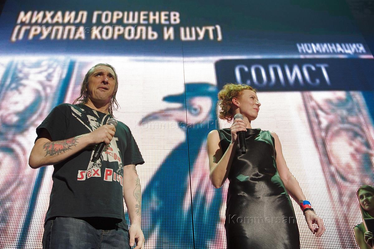 Солист группы "Король и Шут" Михаил Горшенев (слева) на церемонии вручения премии "Чартова Дюжина" радиостанции "Наше Радио". Церемония прошла в концертном зале Stadium Live.