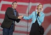 Корреспондент издательского дома "Коммерсантъ" Борис Барабанов (слева) и представитель в Совете Федерации России от Кировской области Светлана Журова (справа) на церемонии вручения премии "Чартова Дюжина" радиостанции "Наше Радио". Церемония прошла в концертном зале Stadium Live.