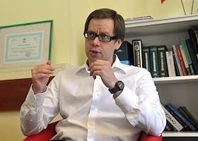 Генеральный директор "ГлавСтрахКонтроль" Николай Тюрников во время интервью.