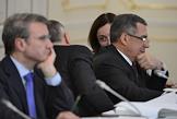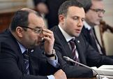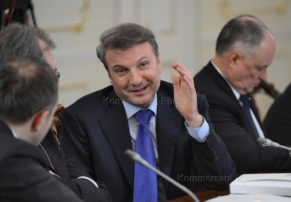 Генеральный директор ФГУП "ИТАР-ТАСС" Сергей Михайлов (слева) и директор направления "Новый бизнес" автономной некоммерческой организации "Агентство стратегических инициатив по продвижению новых проектов" Артем Аветисян (в центре) во время заседания наблюдательного совета Агентства стратегических инициатив (АСИ). Заседание прошла в резиденции Ново-Огарево.