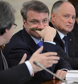 Президент "Сбербанка России" Герман Греф во время встречи президента России Владимира Путина с представителями "Агентства стратегических инициатив" (АСИ) в Ново-Огарево.