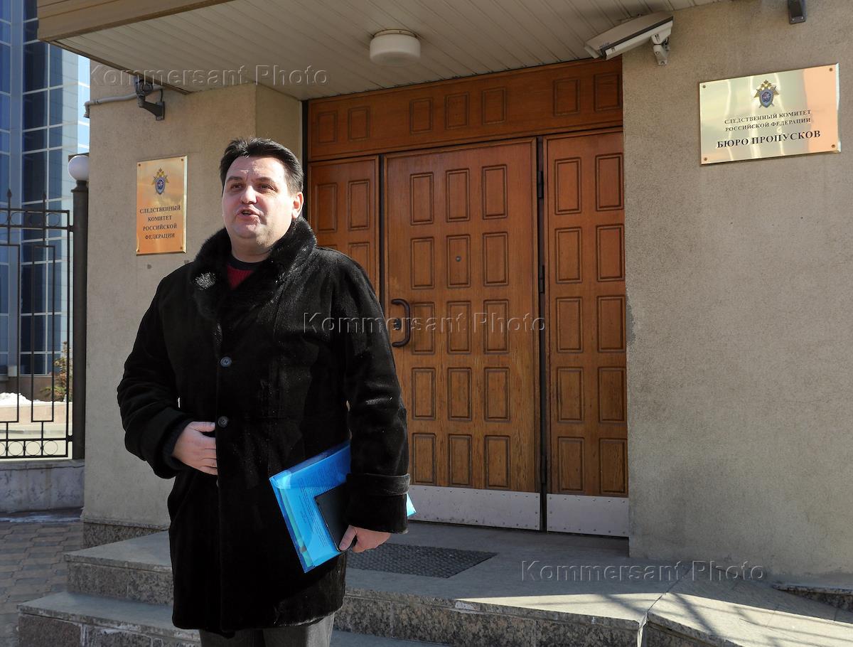 Депутат Государственной думы России от партии "Справедливая Россия" Олег Михеев (слева), против которого возбуждены уголовные дела сразу по нескольким статьям, включая мошенничество и воспрепятствование правосудию, после допроса в Следственный комитет России.